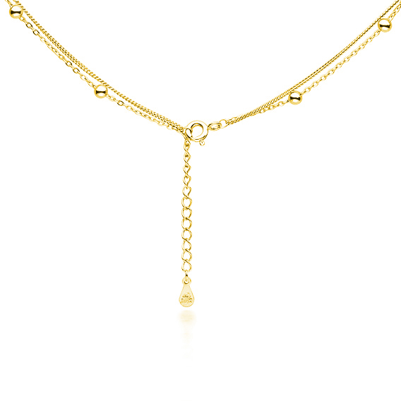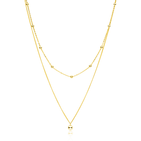 Colier dublu realizat din argint 925 placat cu aur galben de 14 K. Lungimea primului colier 35-38 cm, lungimea celui de-al doilea colier 45 cm. Diametrul bilutei pandantiv 6mm. Grosime lant aproximativ 1 mm. Bijuteria nu contine nichel, cadmiu sau plumb. Produsul vine insotit de cutie de bijuterii cadou si certificat de garantie si autenticitate. Bijuteriile Ludique Jewelry sunt analizate si/sau marcate de Autoritatea Nationala pentru Protectia Consumatorului – Directia Metale Pretioase, Pietre Pretioase si Proces Kimberley.